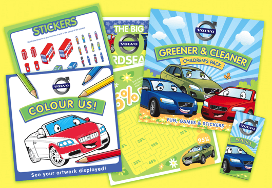 Packme have produced many bespoke activity packs for car dealerships over the years. A notable activity pack was Volvo’s Greener & Cleaner pack. They opted for a green approach, with the aim of educating children about ethical driving.